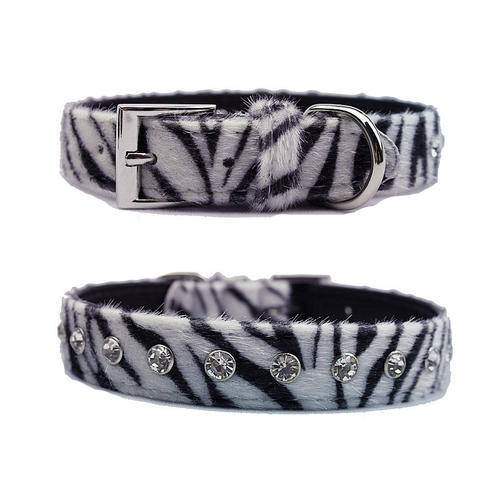 DOGGIE HILLFIGHER Faux Zebra Skin Diamante Collar