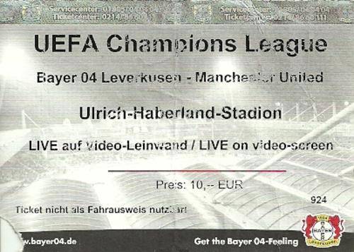 Bayer 04 Leverkusen v Manchester United 2002 UEFA Champions League Match Ticket
