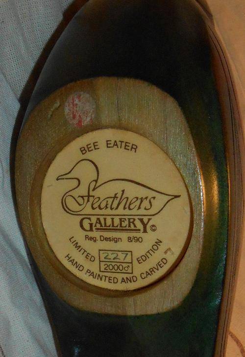 Feathers Of knysna Hand Painted Wood Pair of "Bee Eater's" Limited to 2000 Only