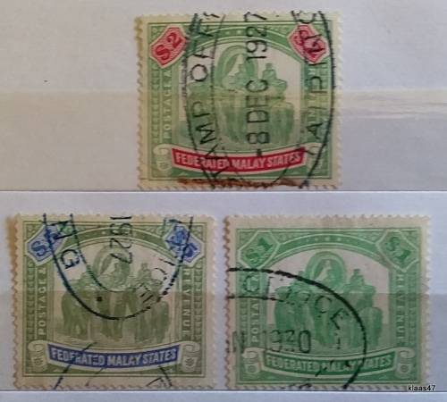 Fed Malay States - 1904-22 - $1 $2 $5 - Elephant - Fiscal - 3 Used Hinged stamps