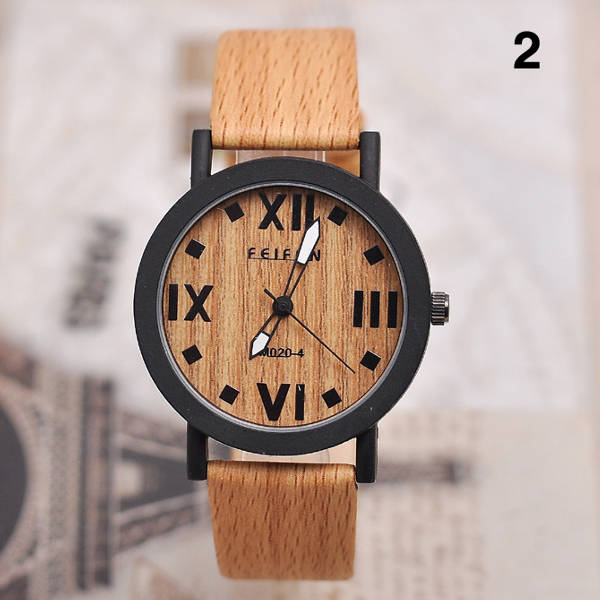 FEIFAN Men Women Vintage Wood Grain Roman Number Quartz Watch