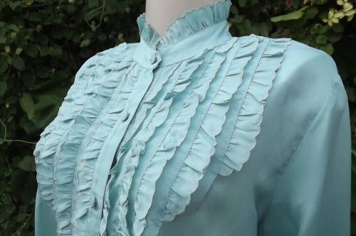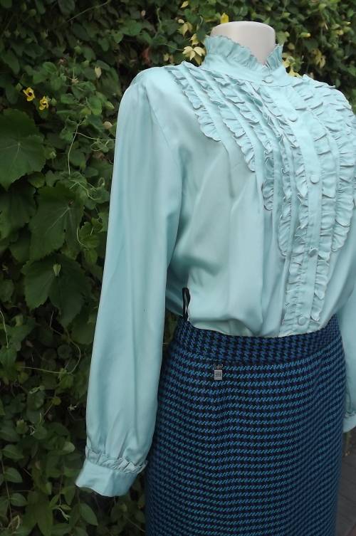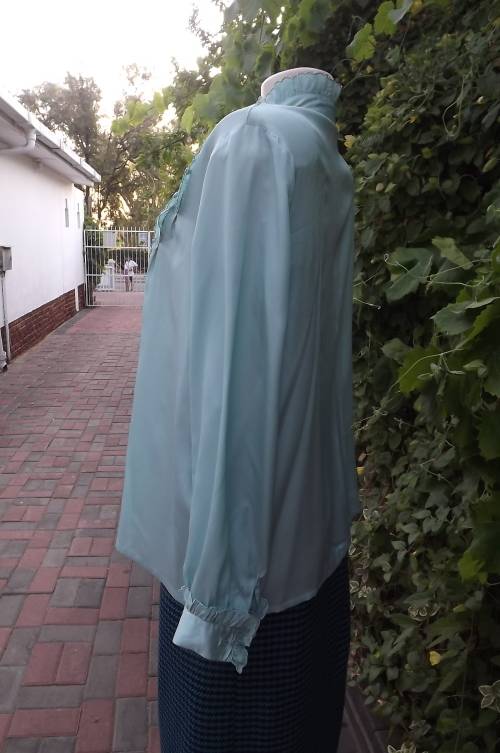 Feminine vintage seagreen blouse by LILY from the East.In 100% polyester.High neckline.