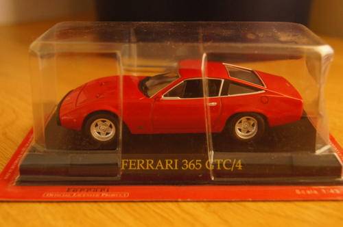 Ferrari 365 GTC/4 1:43 diecast model car on base. (Bid per car to take all 3)