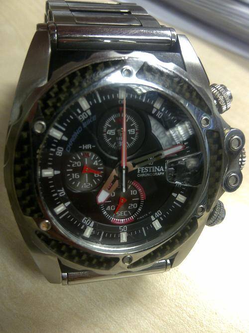 FESTINA CHRONOGRAPH MENS WATCH. STAINLESS STEEL. WATER RESISTANT 10ATM. MODEL F16273. MEASURES +/- 45MM x 10MM. WILL FIT A WRIST SIZE OF +/- 20CM. NO EXTRA LINKS. POSTAGE R100 SPEED SERVICES