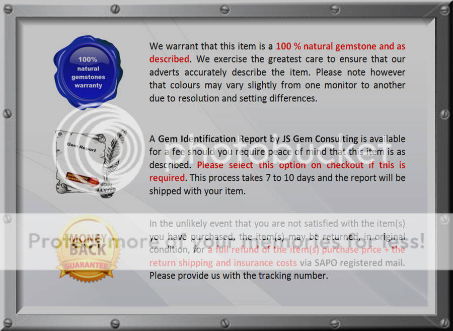 These photos were enlarged by at least 60x magnification to present this stone to you in the highest detail. This is considerably higher than the 10x magnification used as the standard for gemstone clarity definition. Blemishes/inclusions evident at this magnification are generally not visible to the naked human eye.