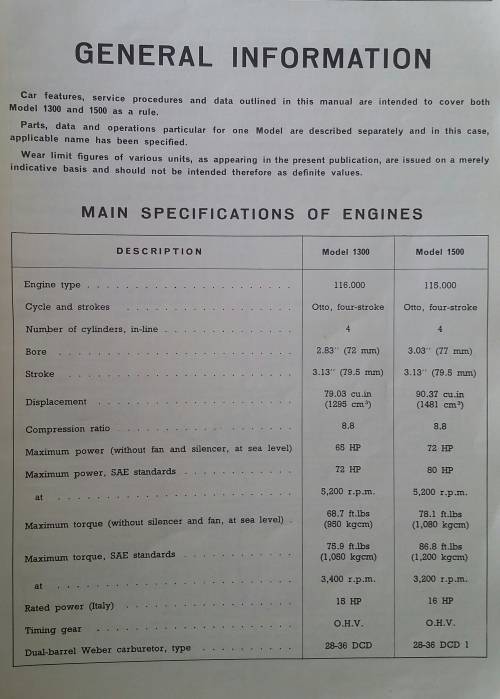 Fiat Passenger Cars 1300 - 1500 Shop Manual