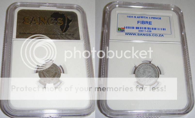 FIBRE 1935 Tickey (3d) : Union of South Africa : Sangs authenticated
