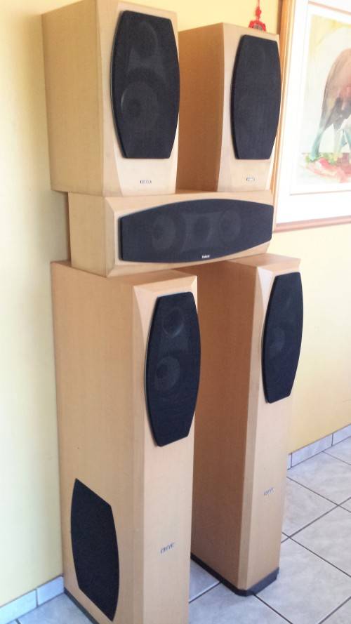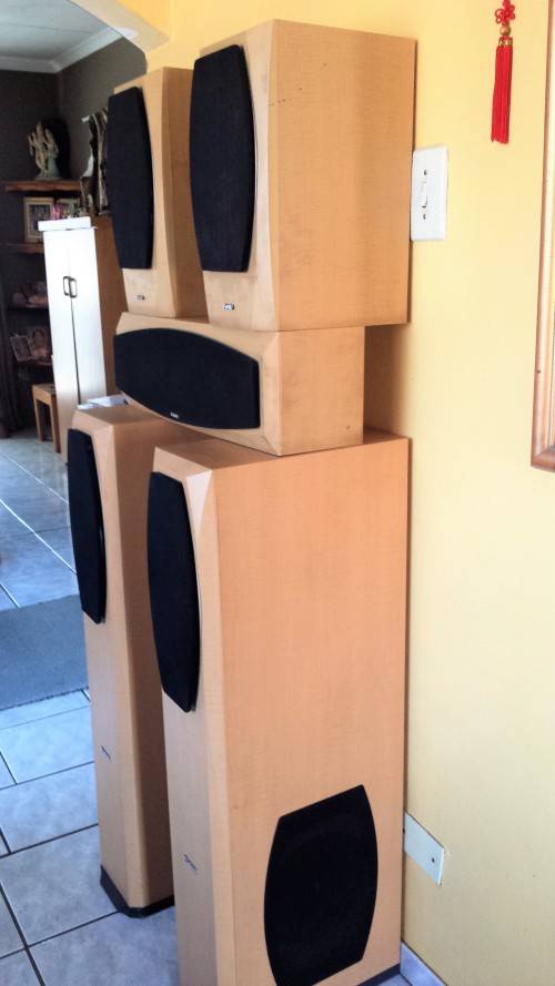 Fidek Home Theatre Speakers, 100w. These are large speakers - designed in the US. H - 1.45m, Depth - 39cm. Great Sound