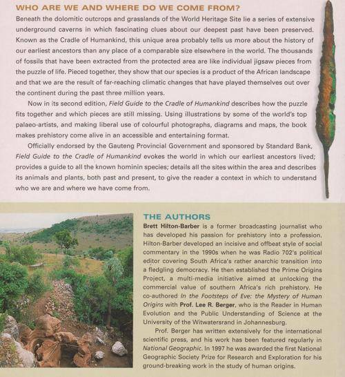 Field Guide To The Cradle Of Humankind By Brett Hilton Barber & Lee Berger, published in 2002, 212 pages, slightly larger softcover, slight scuffing etc otherwise all good.