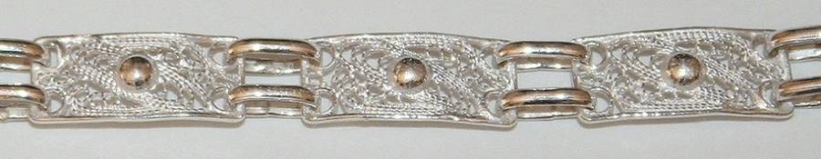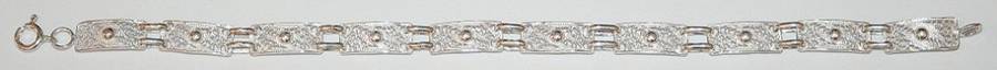 A bracelet: 6.5mm wide, 19cm long, on soldered connecting rings and a bolt ring.