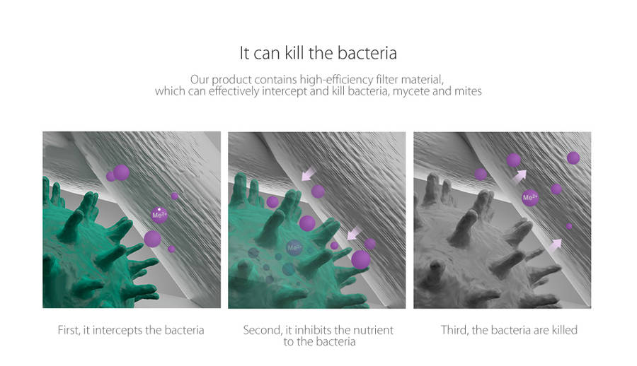 -Effectively removes dust mites, PM2.5, bacteria in the air