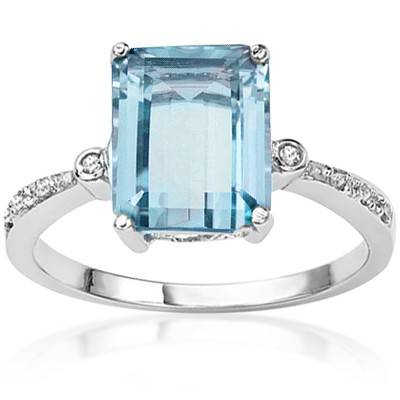 FINE 4 CT BLUE TOPAZ & 2 PCS WHITE DIAMOND 0.925 STERLING SILVER W/ PLATINUM RING