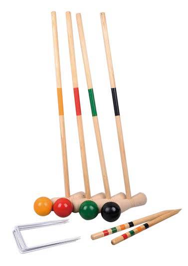 The set contains regulation size & weight balls, lighter weight steel hoops, and everything you need to enjoy the game in full.