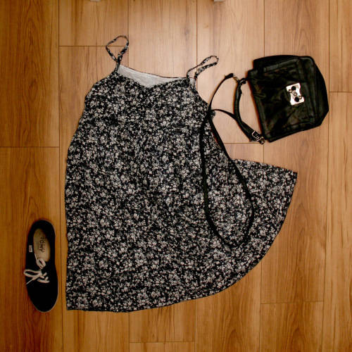 Beige . Charcoal . Small Floral Print . Strap . Short . Dress . Medium