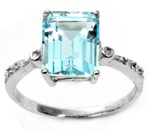 FINE SOLID 9KT WHITE GOLD GENUINE BLUE TOPAZ AND DIAMOND RING