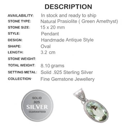 Fine Sparkle Natural Green Amethyst (prasiolite) Gemstone .925 Silver Pendant