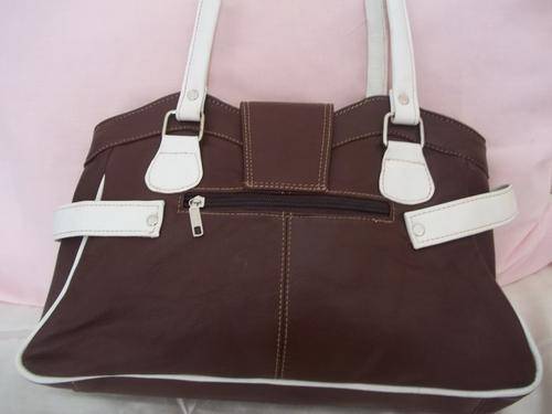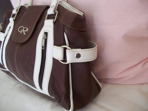 GENUINE LEATHER HAND BAG IN A BROWN& CREAM.SIMPLY GORGEOUS!