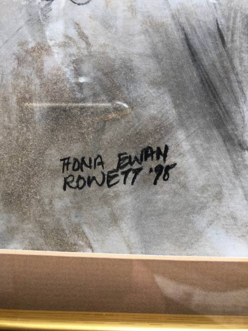 FIONA EWAN ROWETT FRAMED ORIGINAL MIXED MEDIA signed and dated 1998 IN A STUNNING GOLD FRAME
