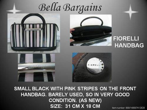FIORELLI HANDBAG, BLACK AND PINK STRIPES - AS NEW