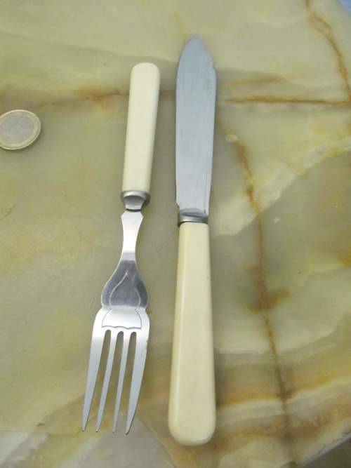 THIS IS THE 3rd LOT/SET OF FIRTH STAYBRITE VINTAGE SHEFFIELD STAINLESS FISH FORK AND KNIFE WITH FAUX BONE HANDLES