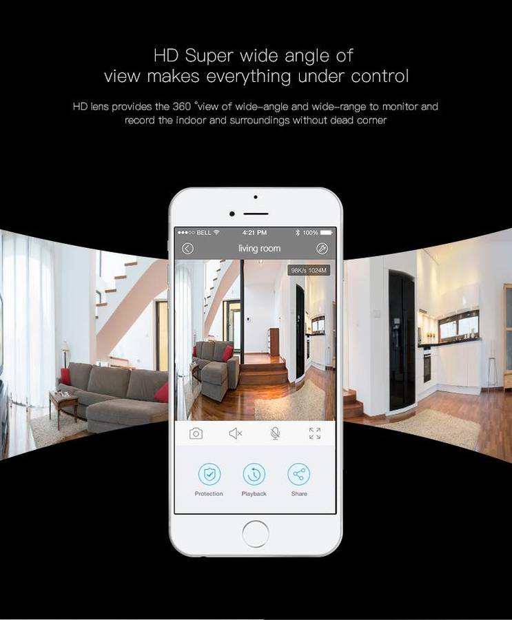 165° HD Super wide angle of view makes everything under control. HD lens provides a view of wide-angle and wide-range to monitor and record the indoor and surroundings without dead corner