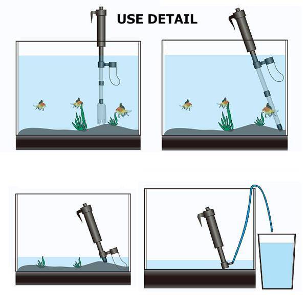 Feature: Adjustable height. Easy to install and use. The filter+water siphon(2-IN-1). Easy operation,high safety performance. Remove the dirty things from the bottom of your aquarium effectively. Supported two suction pipe sizes, suitable for both small and large aquariums. Also be used as a water siphon for water changes, or to empty your aquarium when you connect a hose to outlet.