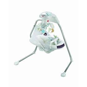 Swing has deluxe, rich soft well including micro plush, velour and boa that embrace baby in softness. There's a canopy and a soft friend that's tethered to the tray. Swing features three seat positions providing mom with options for her baby side to side cradle motion and head to toe swinging motion to the left or right of center. This swing features motorized mobile with large dome mirror and soft clouds with sweet lambs that entertain the baby from above. Music includes ten tunes five soothing and five happy along with three nature sound effects. Swing has six speeds, volume control and folds for storage. Customize swing experience for baby with just swinging, swinging with music, swinging with music and mobile, or any combination of the three.