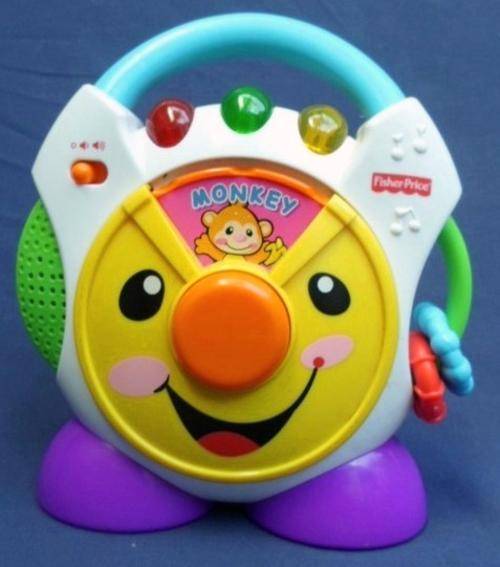22CM X 20CM AND IN VERY GOOD CONDITION. THERE ARE REVOLVING ANIMAL PICTURES (COW,SHEEP, MONKEY,MOUSE AND DOG) PRESS THE RED BUTTON AND IT GIVES THE NAME OF THE ANIMAL, THE GREEN BUTTON PLAYS A RELEVANT NURSERY RHYME AND THE YELLOW BUTTON GIVES THE SOUND THE ANIMAL MAKES - TOO CUTE AND ENTERTAINING! TWO VOLUME SETTINGS. TAKES 3 X AA BATTERIES (NOT INCLUDED) REFER IMAGES
