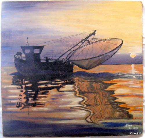 FISHING BOAT : PAINTING ON HARDBOARD : 50,5x48.5cm : DION FULLER
