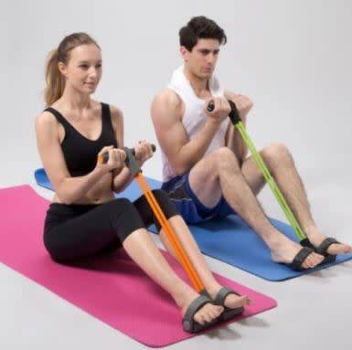 The resistance ex-pander trainer uses the stretch properties of elastic to provide you with training