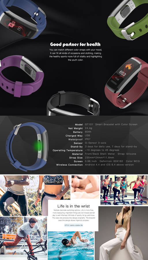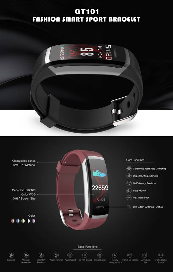 |  | 1 * Bakeey GT101 0.96inch Color Screen Heart Rate Monitor Fitness Tracker Bluetooth Smart Wristband |