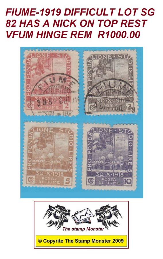 FIUME-1919 DIFFICULT LOT SG 82 HAS A NICK ON TOP REST VFUM HINGE REM R1000.00