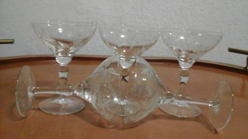 THESE GORGEOUS PIECES ARE THIN RIMMED WITH A WIDENED BOWL. THEY ARE SHORT STEMMED WITH A CIRCULAR BASE.