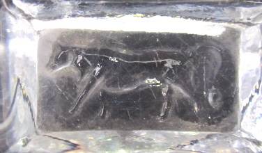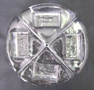 A set of five Swedish art glass ashtrays, each with an embossed ox in the recess, designed by Erik Högland (1932-1998) for Boda. Condition good (one has a very small chip on the base). Each one is signed "Boda" on the base followed by an H (presumably for Högland) and a number. Width of each +-115 mm; height of each +- 30 mm. Although internet research indicates that these are ashtrays, they could also be used as paperweights or as containers for pins/paper clips, or even as individual salt servers at table.