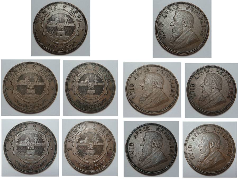 Five Paul Kruger Pennies of 1894 (Bid per coin to take all 5)