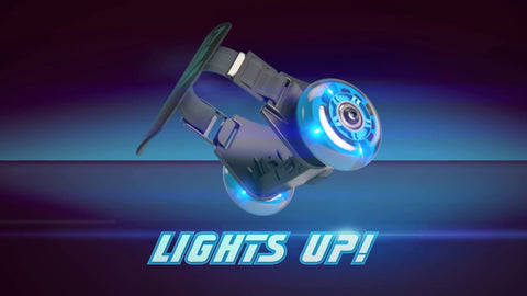 Rollers light up in three colors (red, yellow and blue) as you skate.