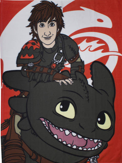 This official Dreamworks How To Train Your Dragon Fleece Blanket features Hiccup the Viking riding his faithful friend Toothless the Dragon.