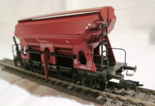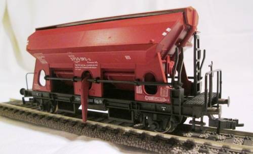 Fleischmann 55100 HO gauge DB self unloading hopper wagon (which dischatges load in conjunction with special offloading track not offered here). Wagon is fitted with replacement Fleischmann profi couplers, i.e. without close coupling attachment (standard Fleischmann couplers not supplied). Wagon is in excellent second hand condition with no visible damage The wagon comes in its original plastic box which is very slightly shelf worn. Track not included.