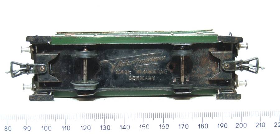 This coach is in fair condition and is up for auction. It has metal/plastic wheel sets and FLEISCHMANN couplings installed. All buffers are intact. Some corrosion on the metal parts was removed as far as possible and treated. Paintwork and decals are in fair condition. Since it is included in the description, please refer to the photos for more information. If you have any questions, send me an email.