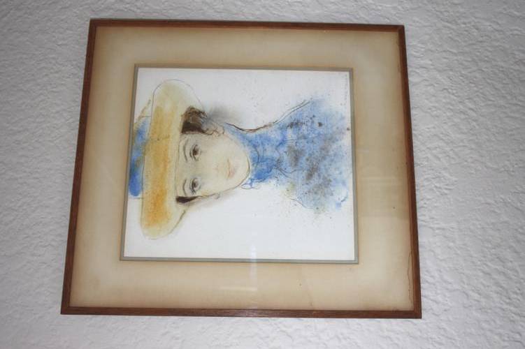 A wonderful portrait by famed artist Fleur Ferri. Since she passed in 2004 her work has increased significantly in value. A mixed media measuring 34cm x 39cm. Frame measures 54cm 60cm. Mounting has darkened but work in perfect condition. Shipping R60.