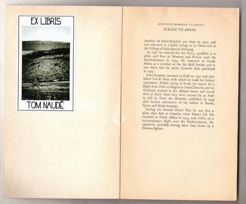 Name-plate ( Ex Libris ) of previous owner, the writer Tom Naude inside.