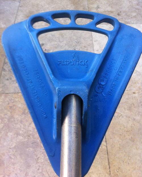 The Flipstick is a dual-purpose walking cane comprised of a rigid, folding aluminum stem with a comfortable plastic seat/handle. A spring-loaded button securely locks the seat/handle in either the walking or sitting positions. Lightweight to carry, yet capable of safely supporting 130 kg