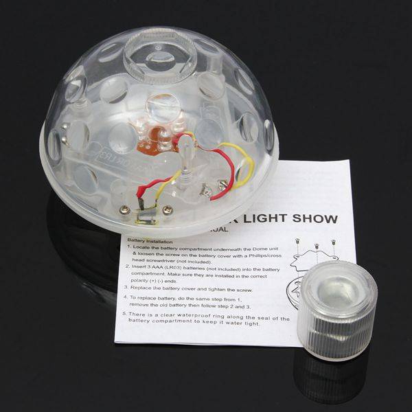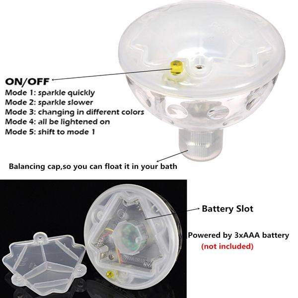 The Underwater Light is a great way to brighten up you bathtub or jazz up your swimming poolFeatures:1. 5 different sequences which you can change between by pressing the button