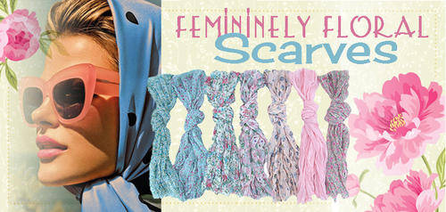 Floral Chiffon Scarf - Light Turquoise, Pink & Rose