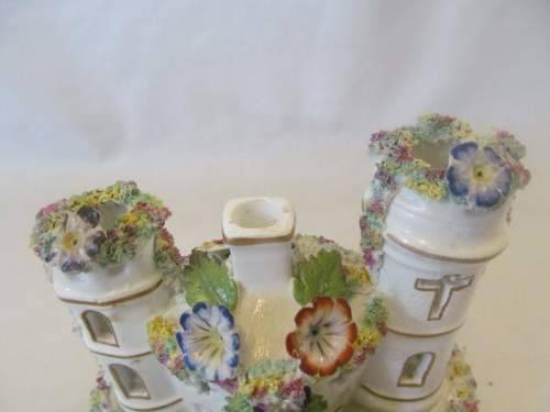 VINTAGE COALPORT STYLED CERAMIC 2-PART COLLECTABLE CHURCH FIGURINE WITH FLORAL DECOR