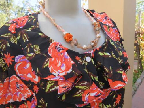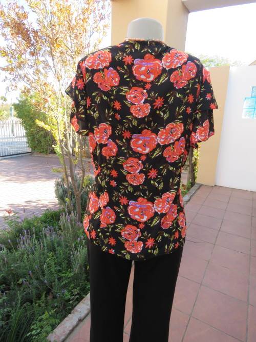 Floral top with short double sleeves in size 42/18 by 'DESIGNER EXCHANGE'.Round neckline with frilled front.In polycotton blend with button down front.As new.