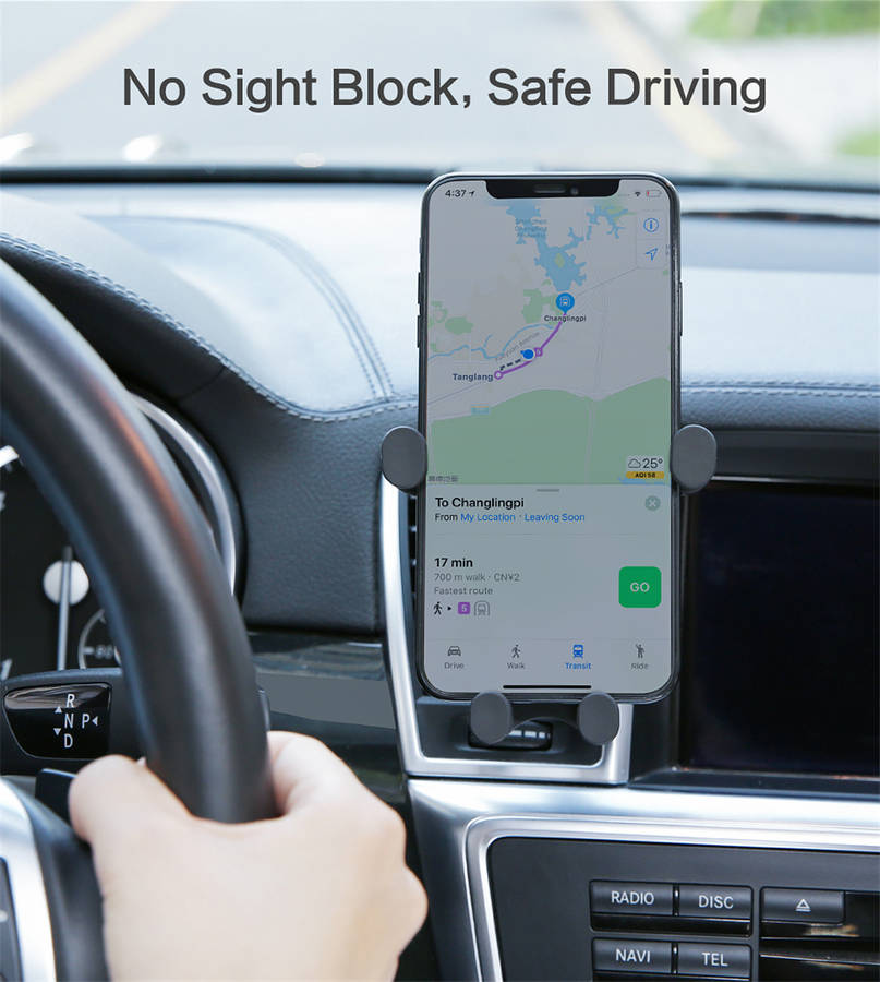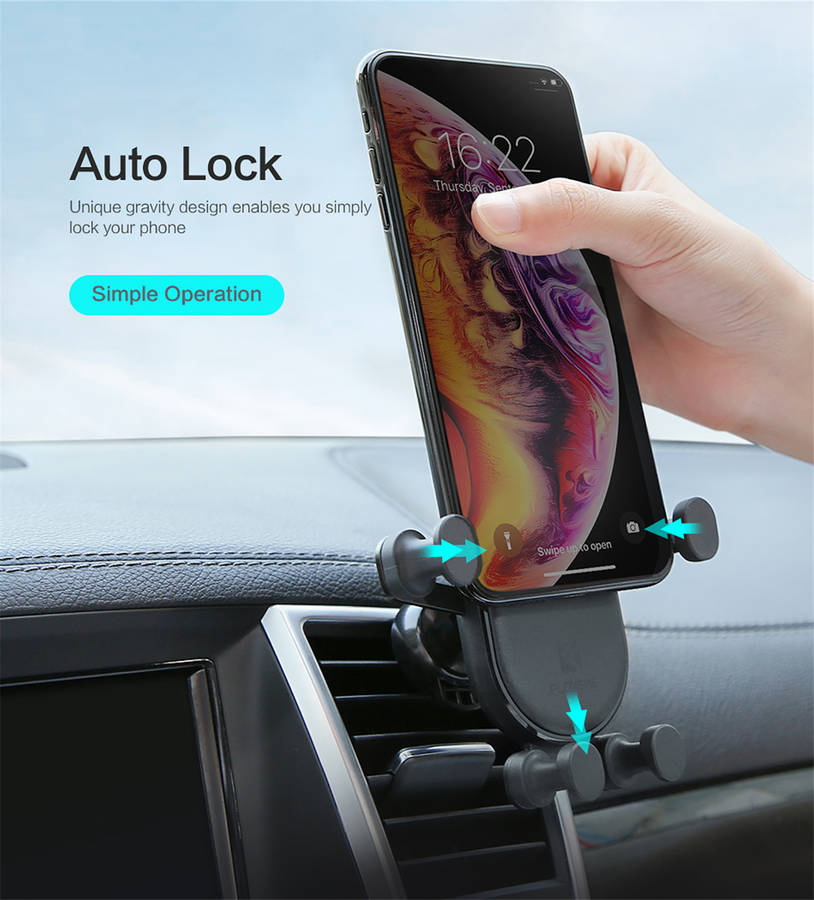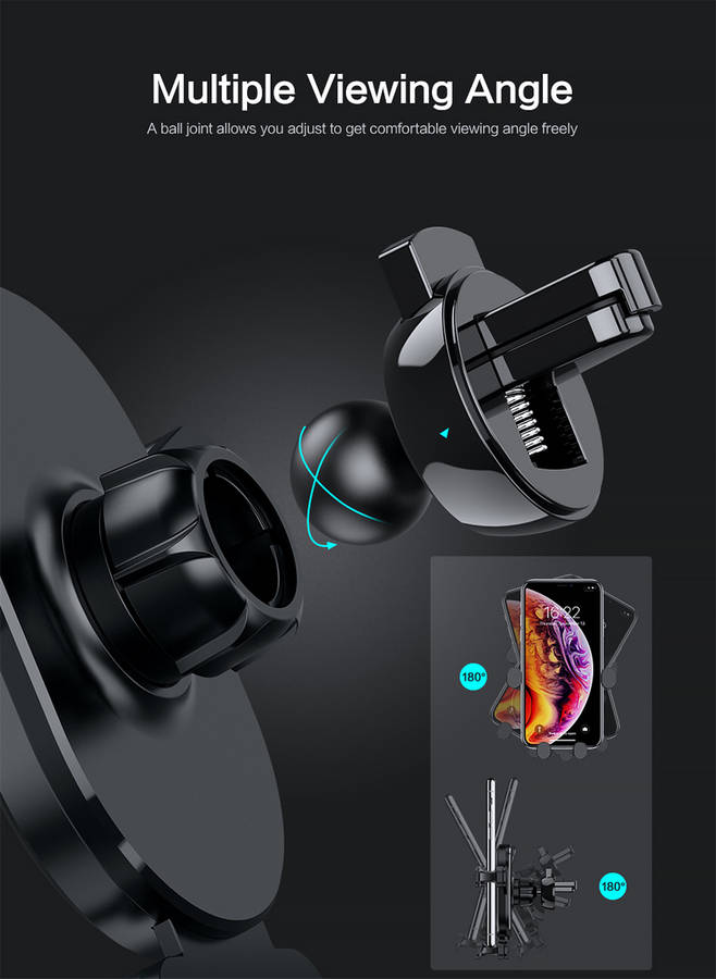 Features: 1. Unique gravity auto lock design enablles you simply lock your phone 2. Flexible soft anti-slip silicone pad do not hurt your car air vent. 3. 360ᆪ viewing angle, a ball joint allows you to get comfortable viewing angle freely. 4. A reserved port enables you charge and unlock your phone conveniently. 5. Mini-size, one-hand operation, will not block your sight when driving.