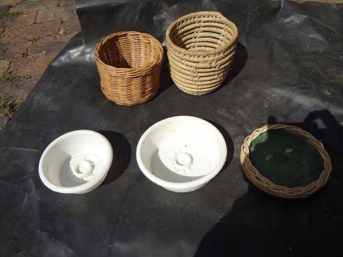 Sold as per picture. 5 baskets and 3 plastic holders (2 white and 1 green (inside basket))