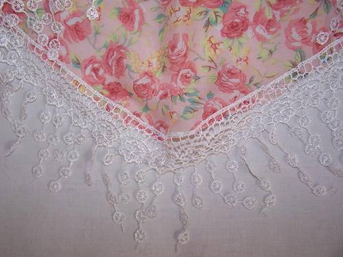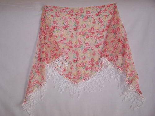 Flower scarves with lace trimmings, 100% polyester. R35 each.