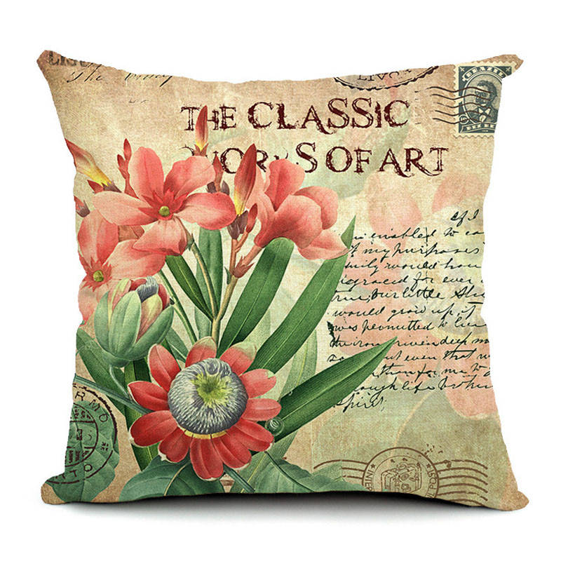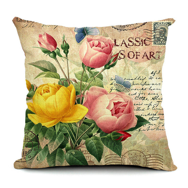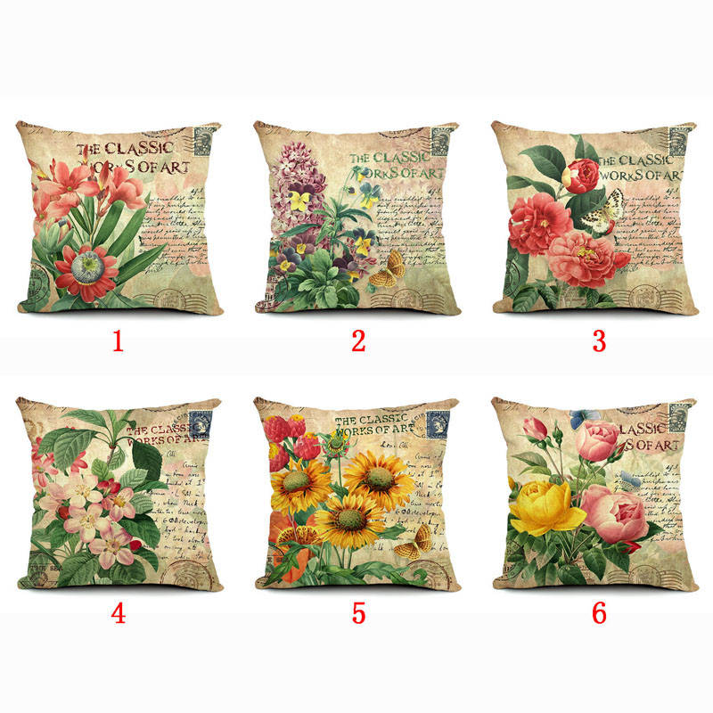 Material :Cotton / Linen Size :45 x 45 cm Style : Various Flowers Application : Car, Sofa, Bed, Home, Hotel, Bar decor